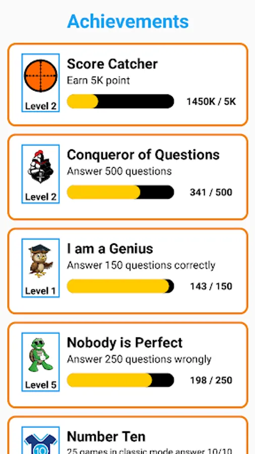 Questions of different difficulty levels