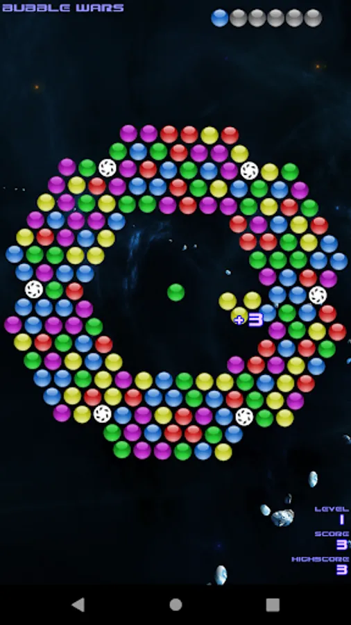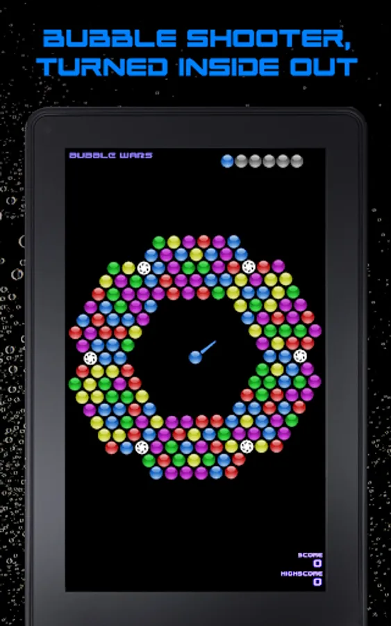 Make a combination of 3 or more bubbles with same color to make them explode! To make it more exciting, the entire army of bubbles sits on a spinning ring full of bubbles. Each time you shoot the bubbles, the bubble ring spins, thus changing the dynamics of your strategy in real time. Challenge your hunger and test your skills to shoot, pop and defeat the army of bubbles in Bubble Wars..