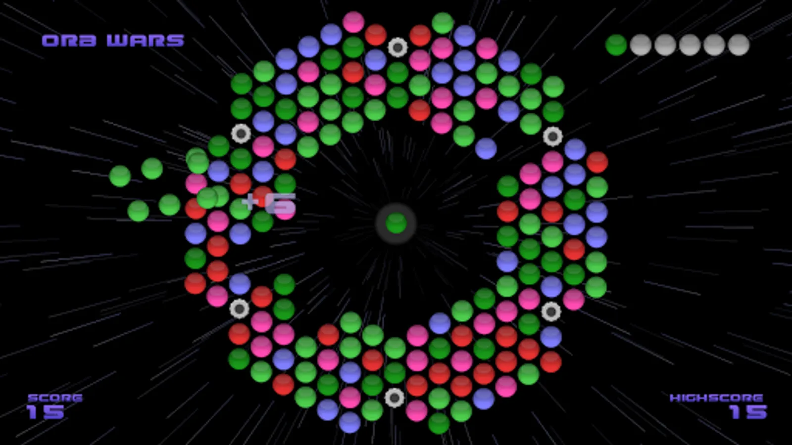Defend Mode - Shoot colored orbs at a spinner ring of orbs that surrounds you. If you get 3 or more colors in a row the orbs are conquered and fly away. Otherwise the ring can start shrinking around you.
