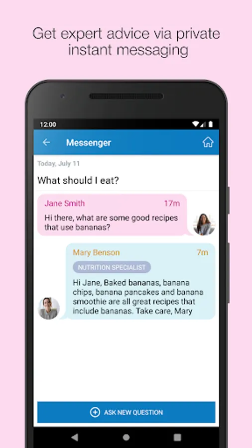 UNLIMITED MESSAGING Ask for diet advice anytime through private instant messaging with nutrition specialists.