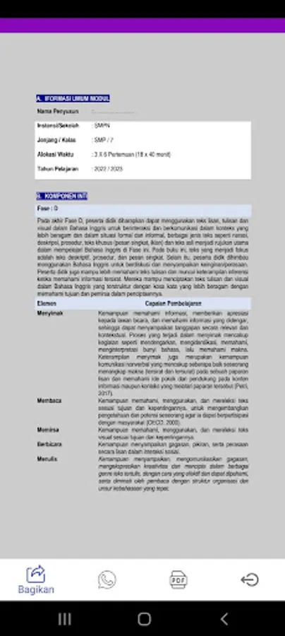The teaching module is an implementation of the Learning Objectives Flow which was developed from Learning Outcomes with the Pancasila Student Profile as the target. We distribute the 2022 revision of the teaching module for the elementary, middle, and high school levels, revised 2022 according to the latest cp