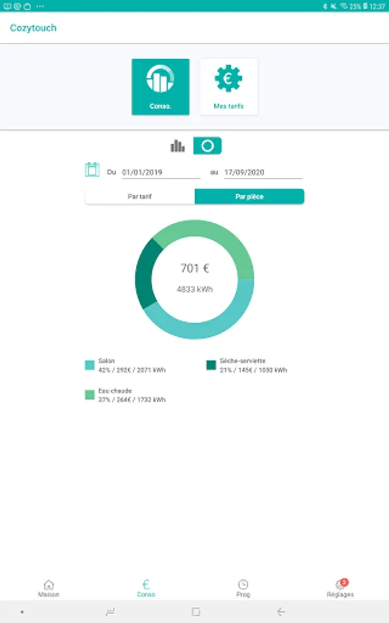 Set your mind at ease when you leave home; Cozytouch lets you turn off your appliances from wherever you spend your weekends or holidays, as well as set the date and time of your return home.