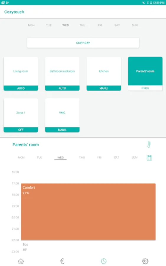 When linked to the Cozytouch gateway, the app lets you control your connected appliances: radiators, bathroom radiators, heat pumps, VMC, air conditioning, water heaters, zone control and interfaces.