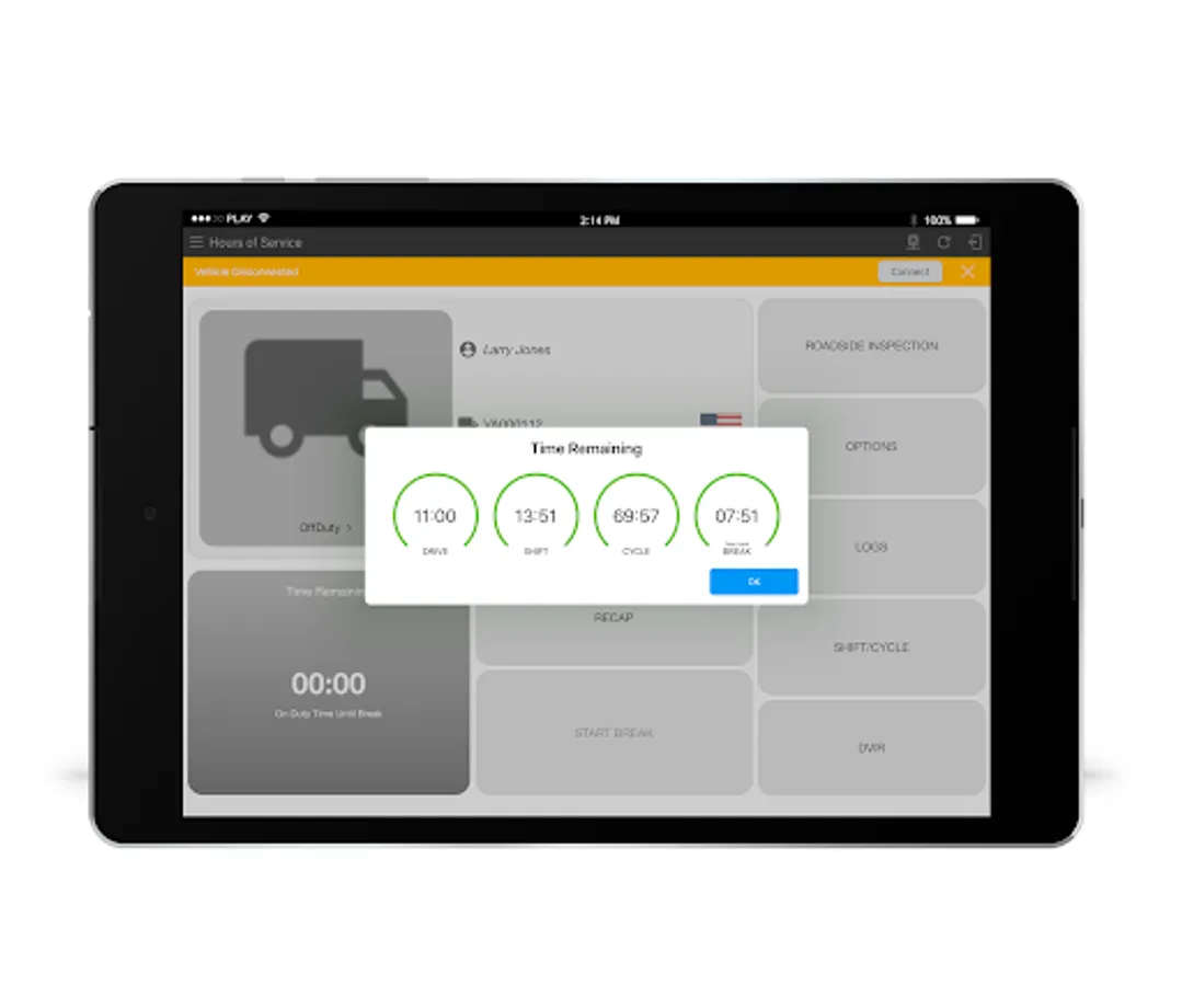 Zephyr ELD device automatically tracks and records driving time, provides ease of use to set driver status and allows you to see remaining drive time hours by day or week. All data records are stored securely on your smartphone or tablet and when needed, records can be easily retrieved.