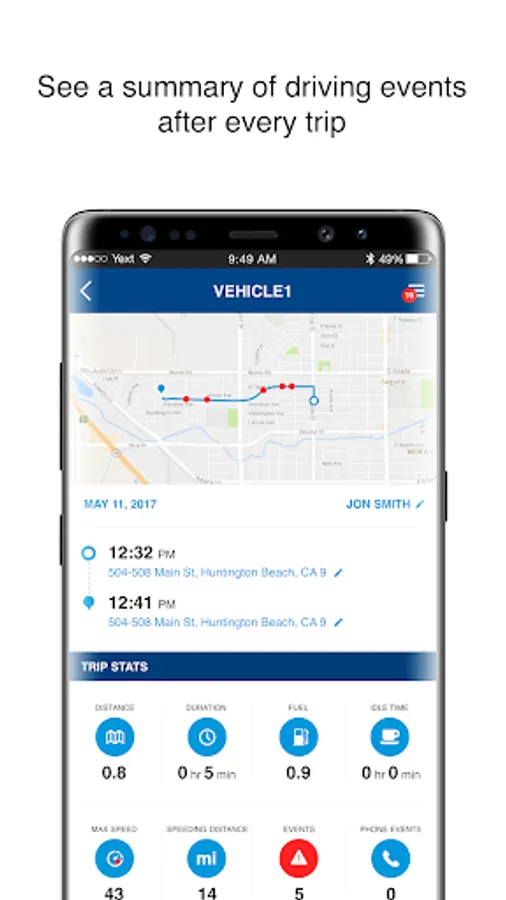 You and your drivers will know their speed, location, and driving events such as harsh braking, turning, idling, and phone use — differentiating between Bluetooth calls and manual phone use like texting while driving. Drivers get actionable insights to improve their safe driving behavior and reduce accidents.