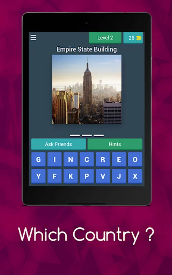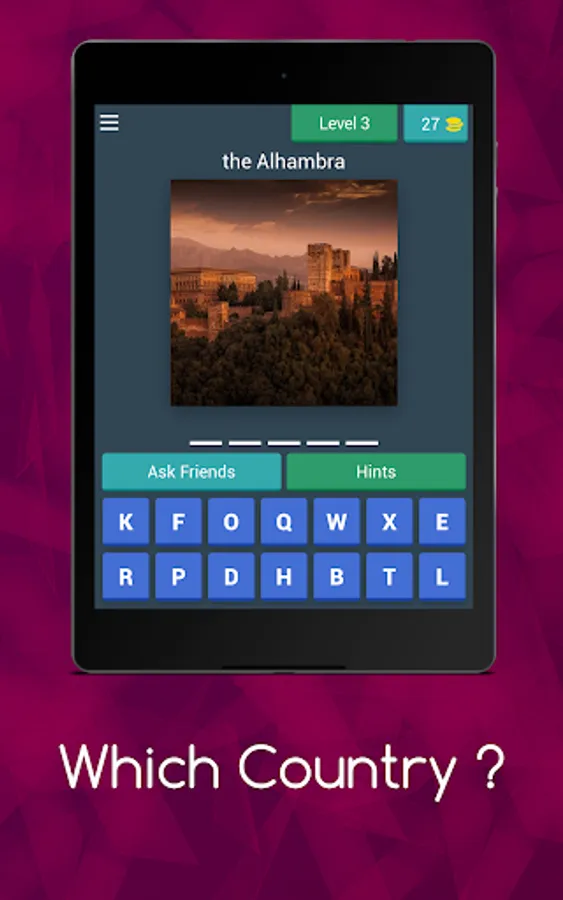 Which Country ? is a fun educational game, the principle is to give an image of a place or a monument known to the world.