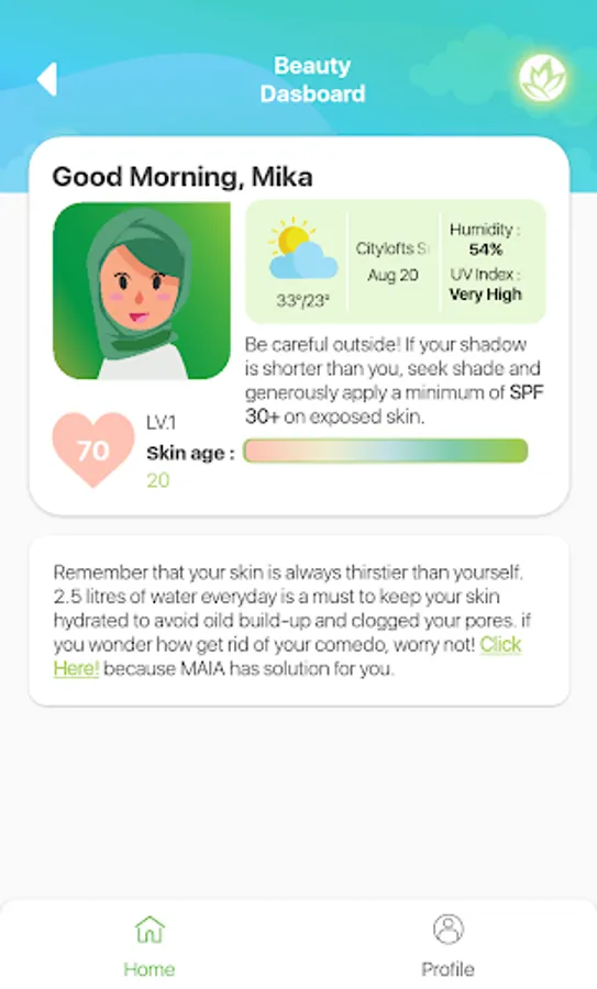 This app evaluates your skin condition using Artificial Intelligence technology with just a selfie. Learn how to build your confidence with our lifestyle & beauty recommendation. Level up your beauty routine anytime, anywhere.