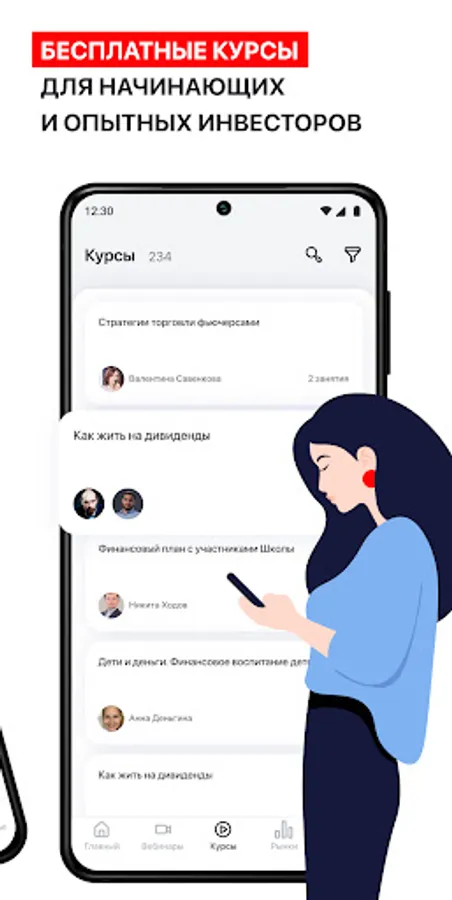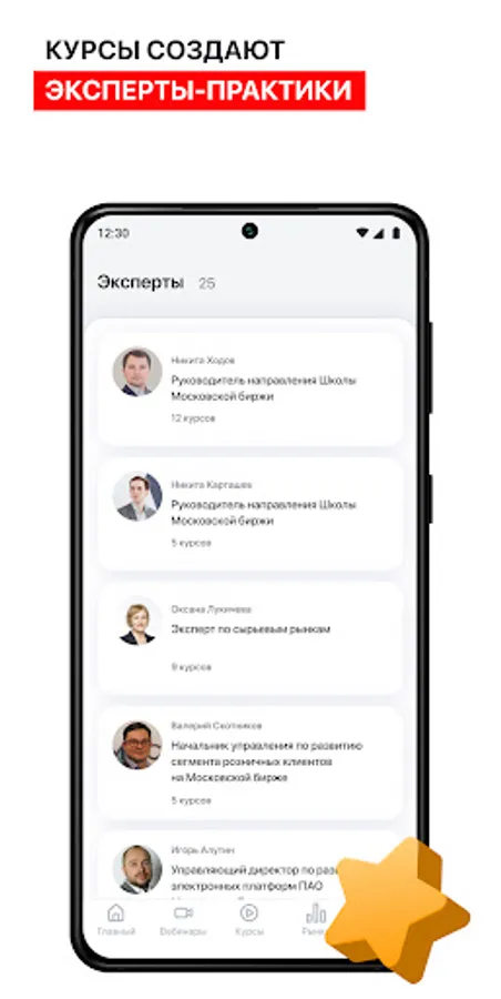 We provide courses for novice investors and experienced traders (on strategies, technical analysis, futures and options). Classes are taught by experienced practicing experts: employees of the Moscow Exchange, representatives of investment houses and practicing traders. Courses are held in the format of live broadcasts and pre-recorded videos.