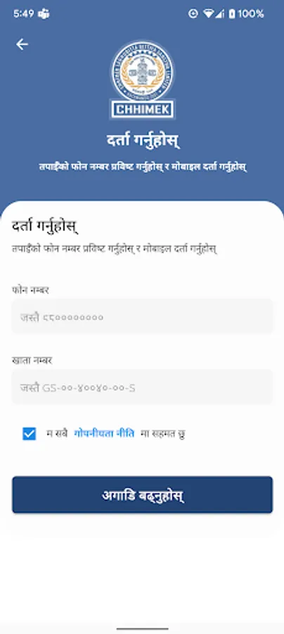 A mobile finance app for Chhimek Laghubitta Bittiya Sanstha Ltd
