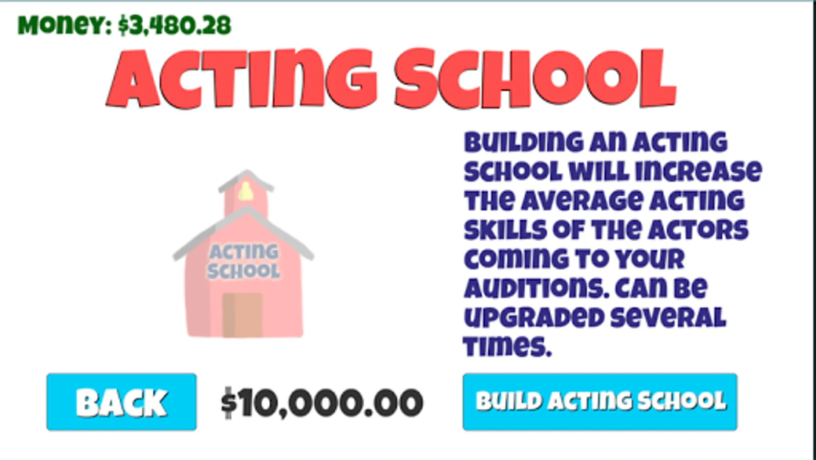 -Upgrade your acting school up to 5 times to get more skilled actors!