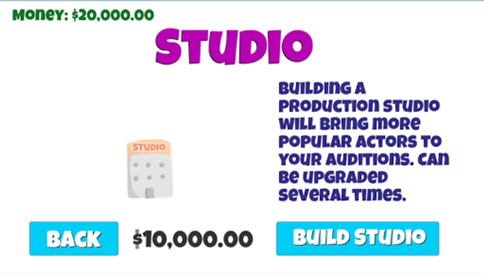 -Upgrade your production studio up to 5 times to get more popular actors!
