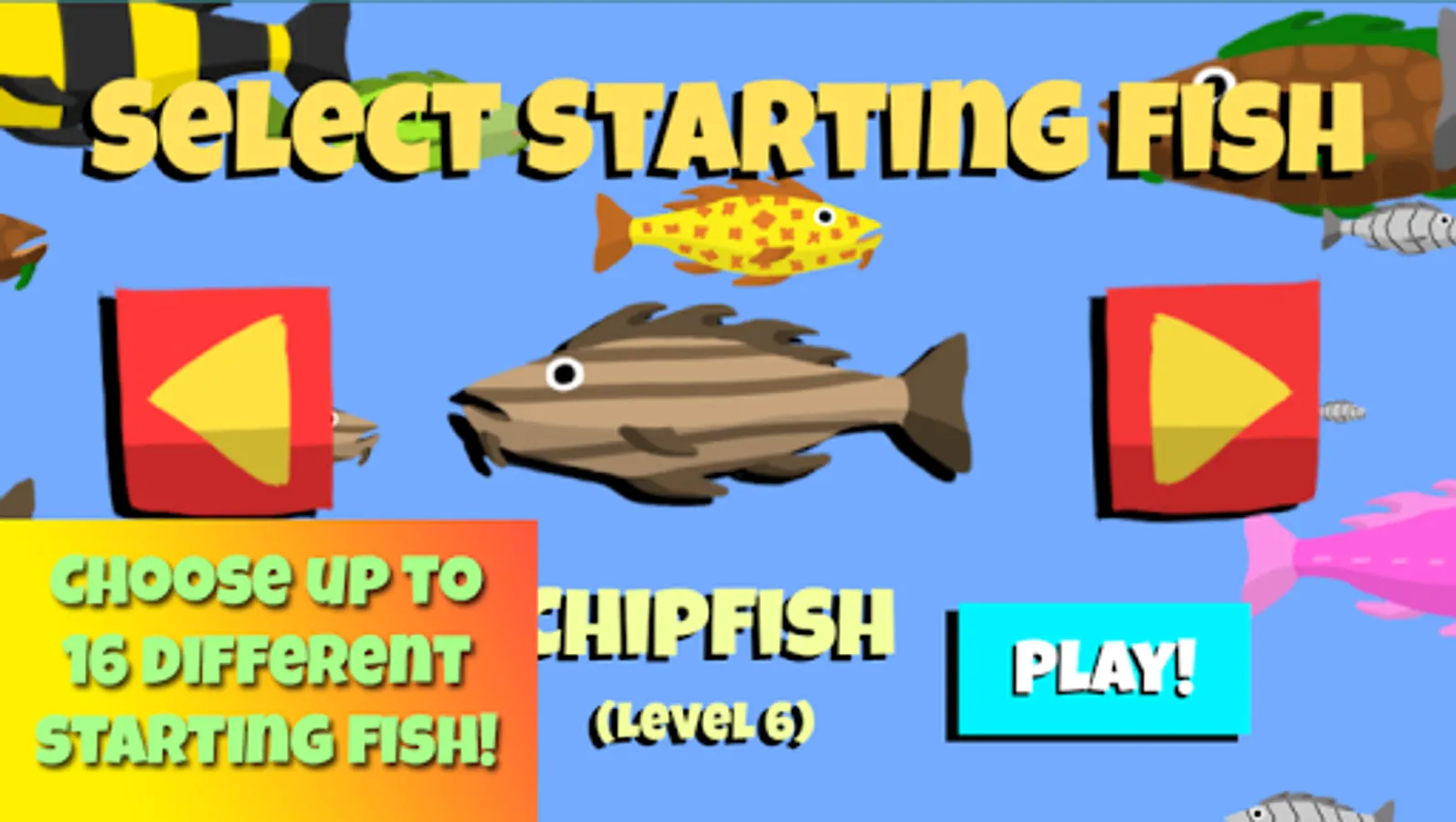 -Choose up to 16 different starting fish!