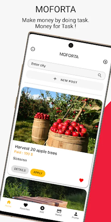 MOFORTA is an easy to use app to earn money by helping people complete tasks. it can be a task, a little job or a mission.
