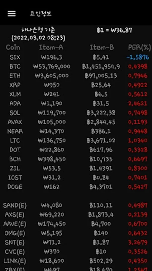 - Function: Check real-time difference analysis by comparing bitcoins circulating in Korea and Thailand
