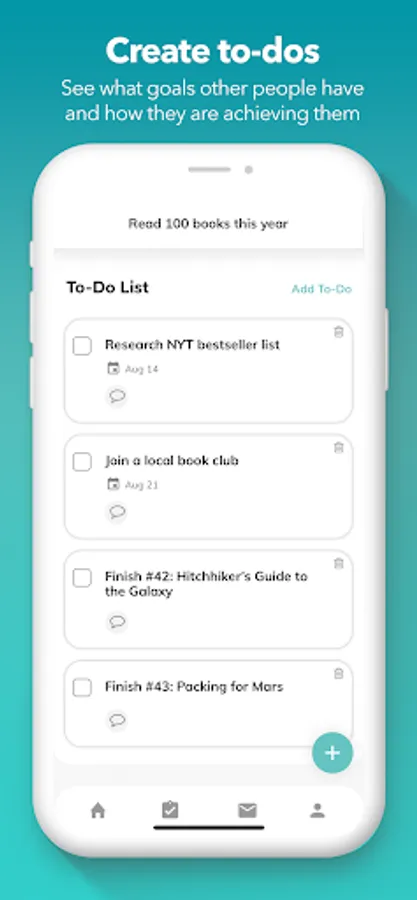 You can post goals publicly or privately, track your progress, and create to-do’s to help you stay on track.