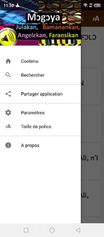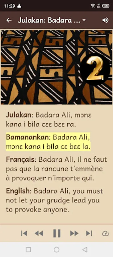 In this app, users will find words of wisdom for youth. Reading audios facilitate quick learning for those interested in these four languages. Dioula, Bambara, French and English. Using this application also allows you to identify similarities and the few differences that exist between Dioula and Bambara.