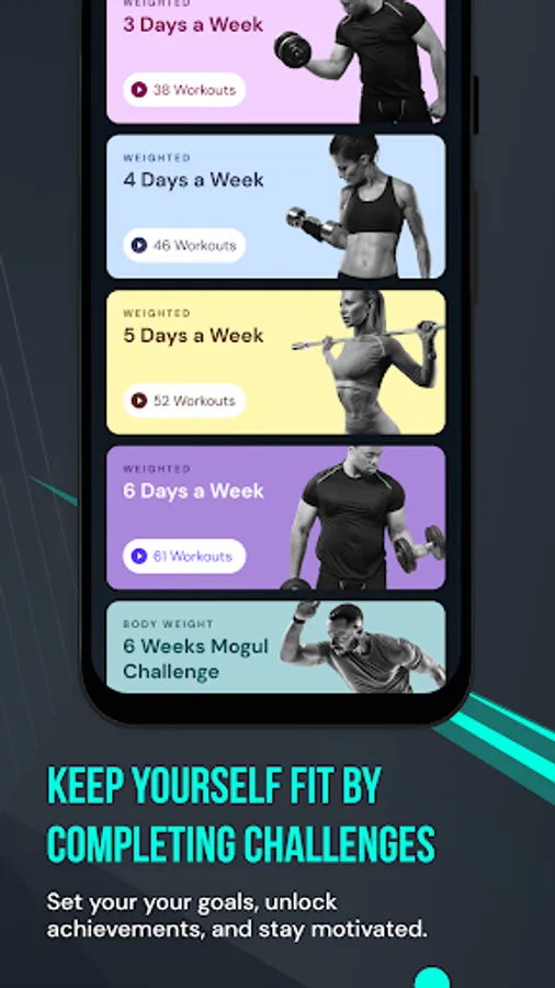 Select from 9 Weighted and Bodyweight Workout Challenges that meet you where you are in your fitness journey.