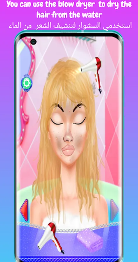 After you have finished cleaning the hair, you can use the blow dryer to dry her hair from the water, then apply make-up to her, then choose the dress and eye color that suits her.