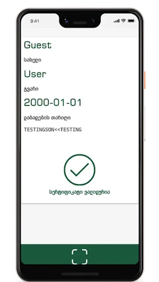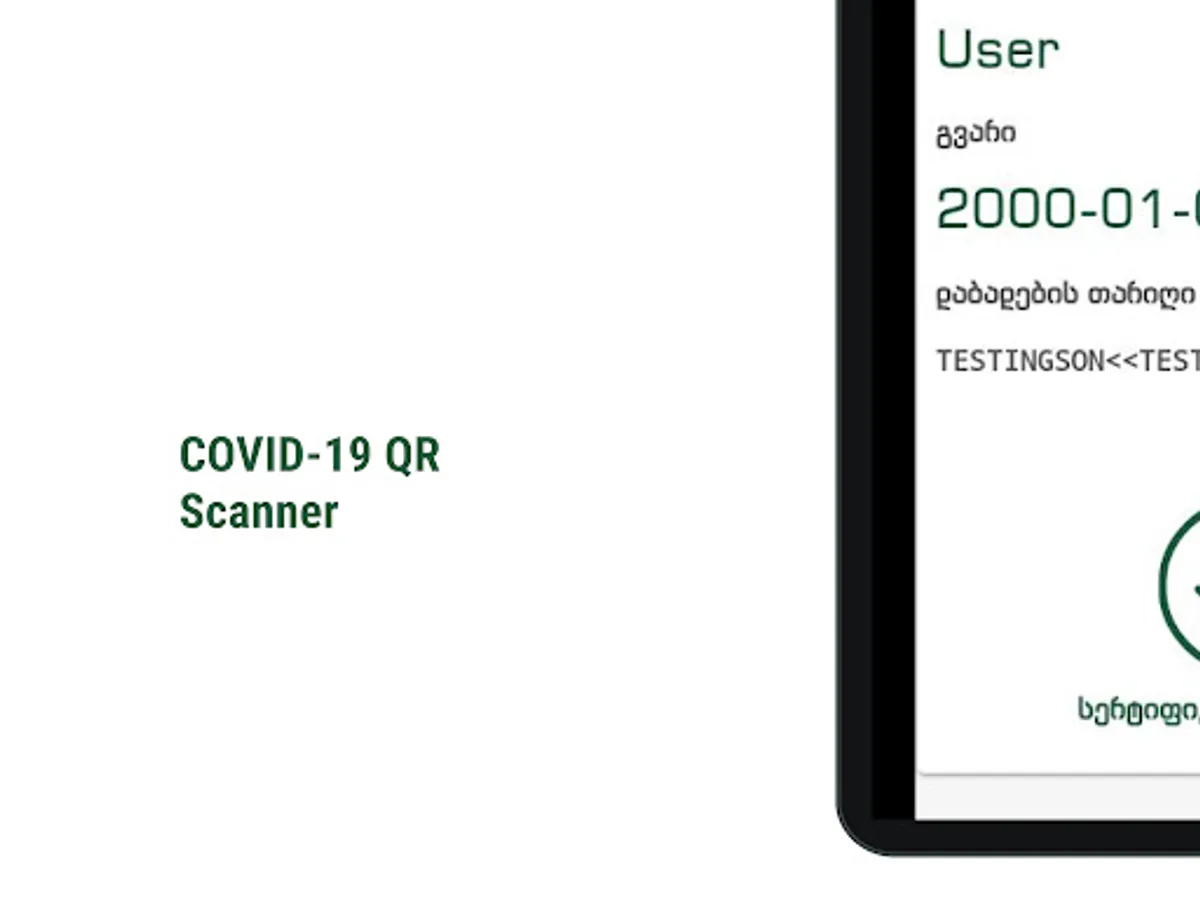 Through the application, the status of the owner is checked by electronic certificates issued to individuals. Through the application, the QR code reflected on the digital Covid certificates issued by the countries is read and the status indicator information is generated. The application sees the information collected by the e-Health application of the respective country or its analogue, which determines the person's quid status based on information on vaccination, testing and disease transmission.