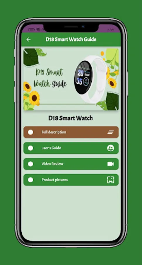 The D18 Smart Watch Guide application contains many information and features of the D18 Smart Watch that you can get clearly and easily.