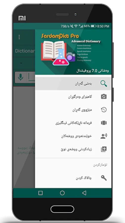 5. پێشاندانی مانای ووشەکان بە لەبەرگرتنەوەی لە هەر شوێنێک بە سێ شێوازی جیاوازی Floating و Notification و Toast.