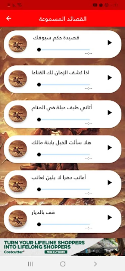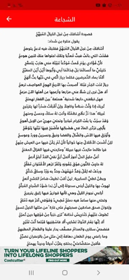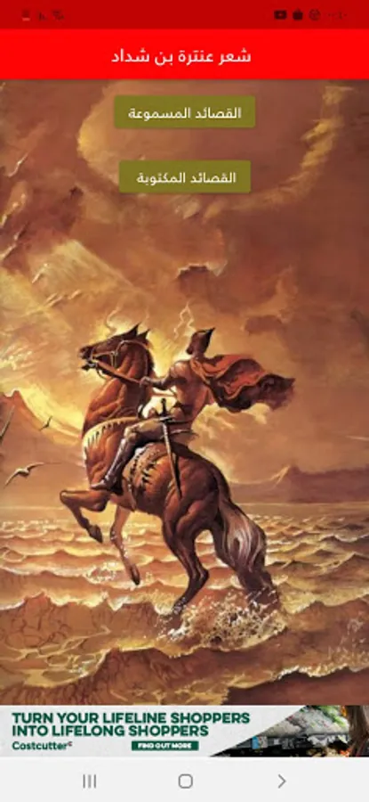 The application contains the most beautiful poems of Antara and his spin on Abla.