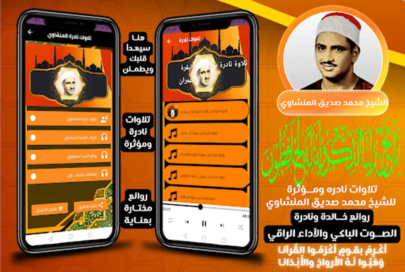 Reciting the Noble Qur’an Al-Minshawi, rare recitations, allows you to hear the intonation of the Noble Qur’an, Sheikh Muhammad Siddiq Al-Minshawi, rare recitations, and you can download the Noble Qur’an to your mobile phone easily and conveniently through one application that provides humbled recitations that shake hearts with the voice of Sheikh Muhammad Siddiq Al-Minshawi