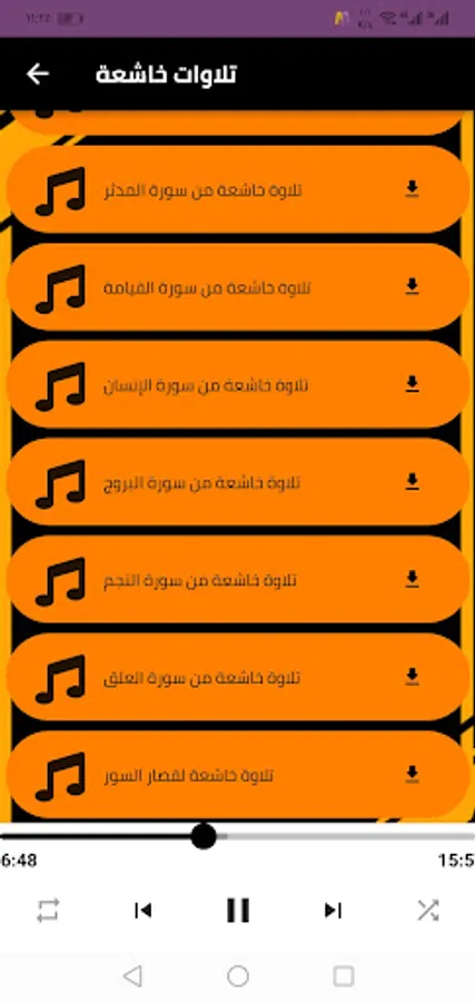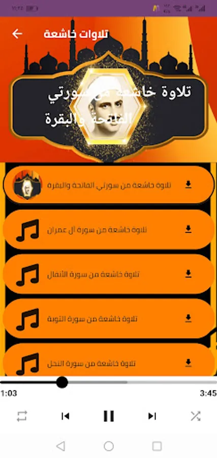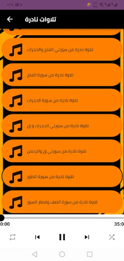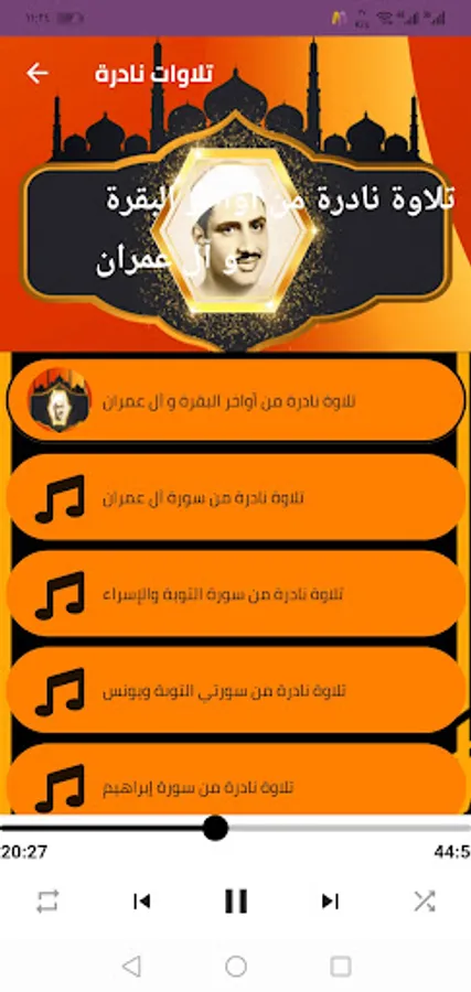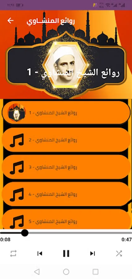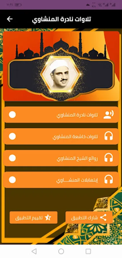 ⬅️ The interface of the rare recitations program, Muhammad Siddiq Al-Minshawi, is very simple, which enables you to use the program with ease and ease, as well as the ease of navigating between the pages of the application of humbled recitations that shake hearts from the recitation of the Noble Qur’an and the intonation of the Noble Qur’an Muhammad Siddiq Al-Minshawi rare recitations