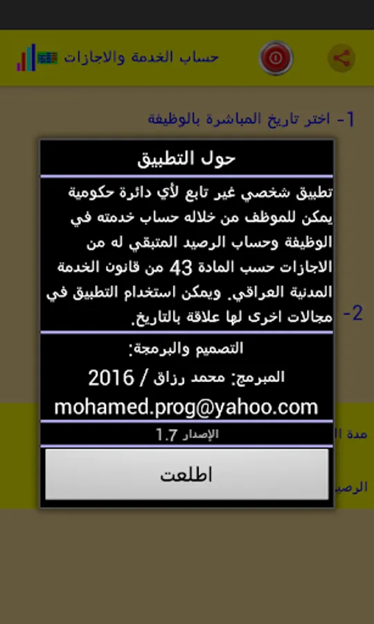 Personal application to calculate the length of service of the civil servant and the accumulated balance of the vacations in accordance with the Iraqi civil service law
