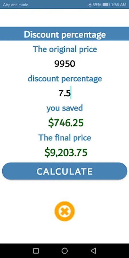 To calculate the discount rate. Enter the original price, then enter the discount rate and press the Calculate button to show you what has been saved and the final price