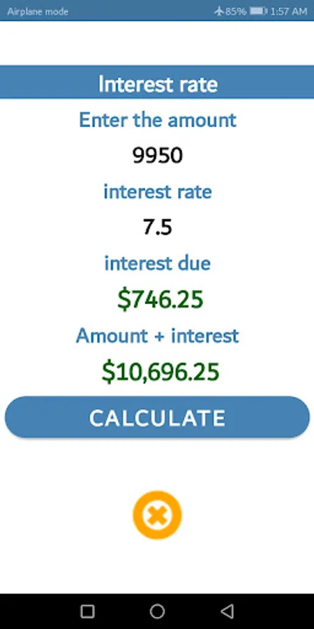 To calculate the interest rate: Enter the amount, then enter the interest rate and press the Calculate button to show you the amount of interest due and the amount after adding interest