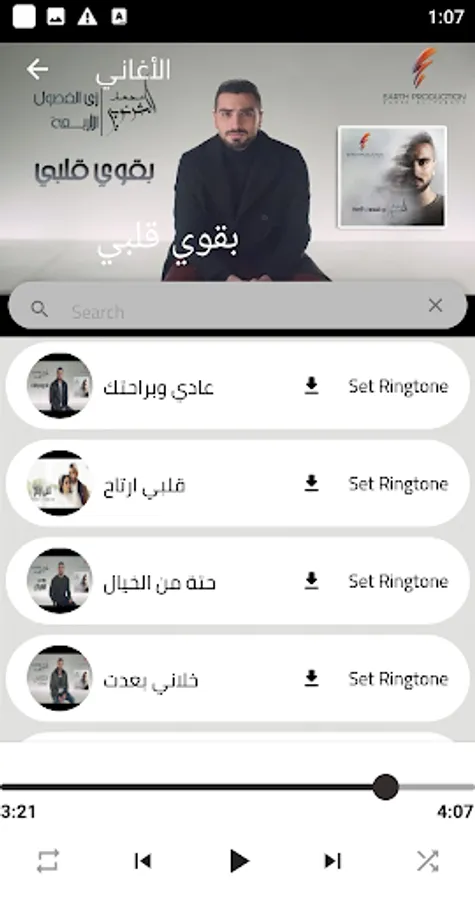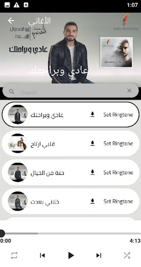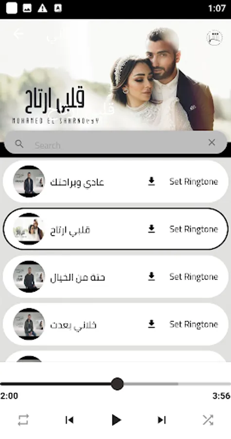 • By applying the songs of Mohamed Al-Sharnoubi without the net, the feature is to search for songs easily