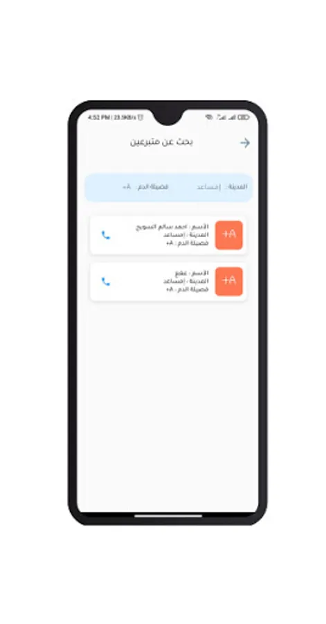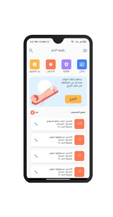 The search is carried out by municipalities and blood type, and donors can be contacted