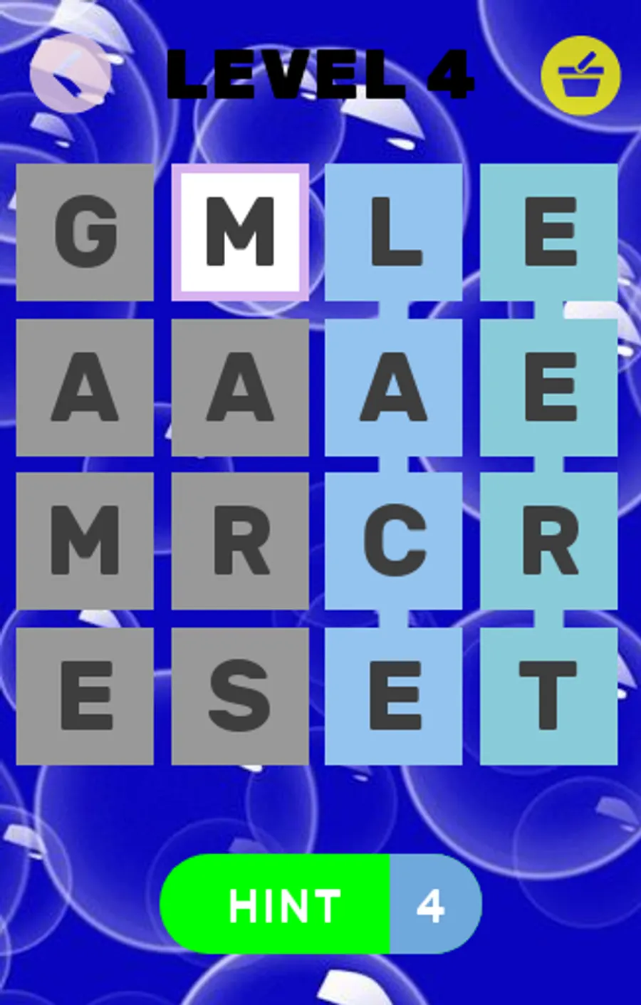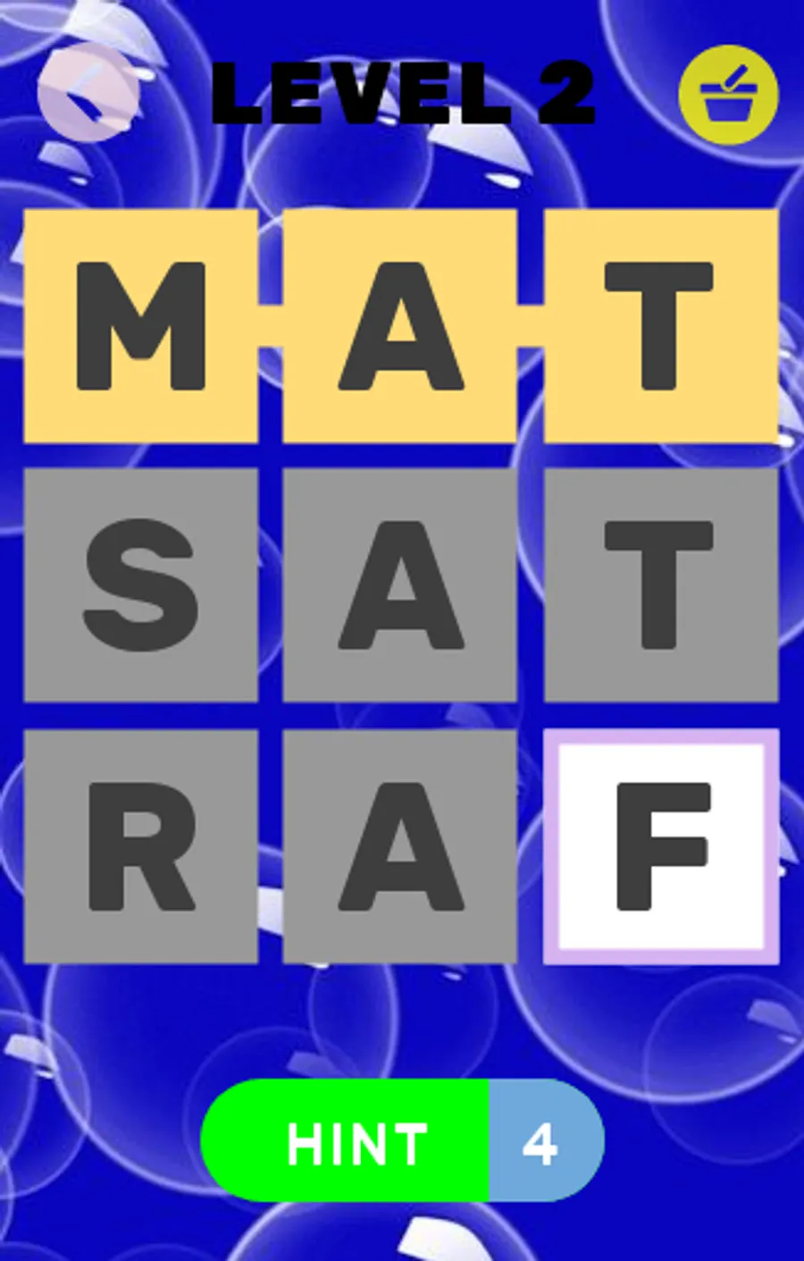 لعبة فقاعات الكلمات هي لعبة تستطيع من خلالها اختبار نفسك في اللغة بالإضافة إلى المتعة والتشويق في المستويات المختلفة ، كما أنك تستطيع أن تصل إلى مستويات مختلفة الصعوبة في اللعبة بالإضافة إلي الحصول على العديد من نقاط المساعدة التي تساعدك على اجتياز المستويات المختلفة .