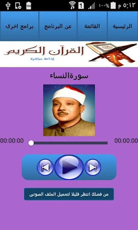 The program is provided with a professional and simple interface for any user to listen to the recitation of the Qur’an and improve the Qur’an with the voice of Abdul Basit Abdul Samad the golden throat
