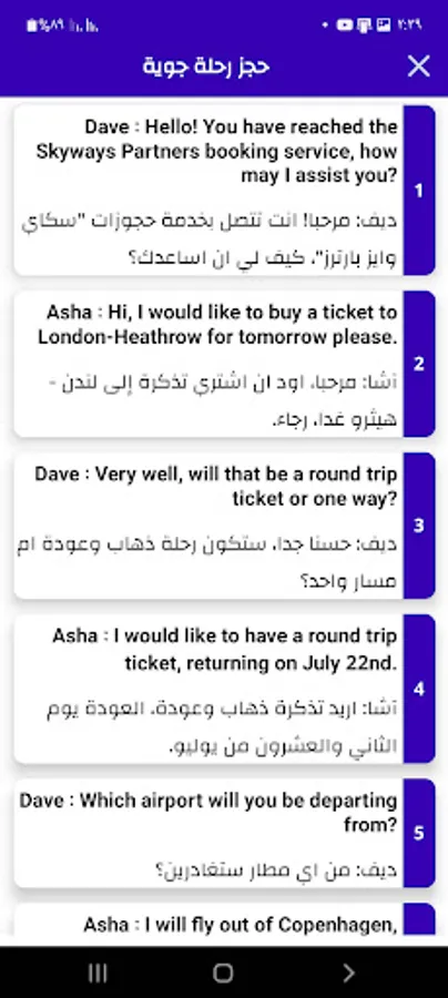 • The application contains translated English voice conversations without the net so that the language is simulated in situations
