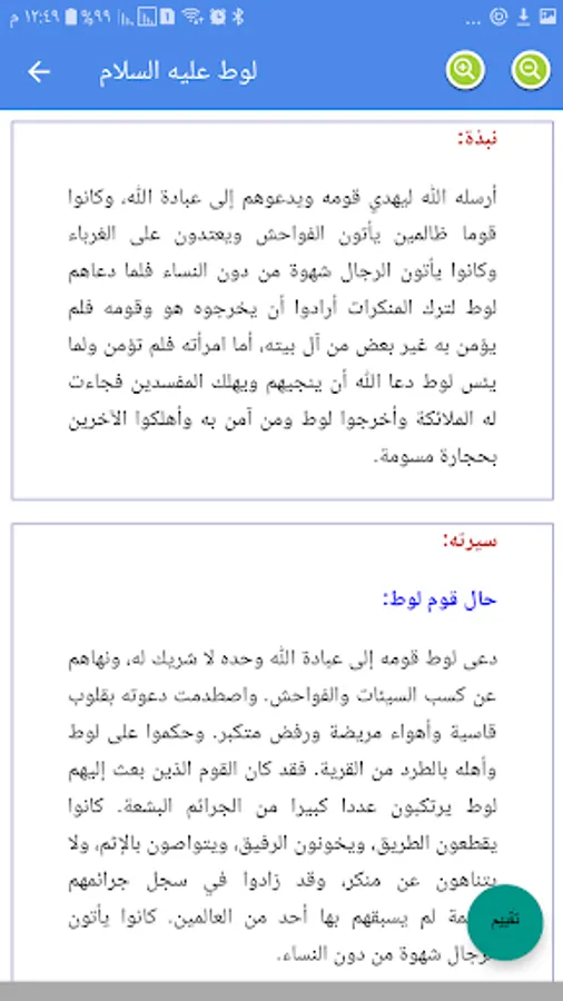 The application contains the verses of the Noble Qur’an that explain the state of each Prophet, as well as hadiths from the purified Sunnah of prophets
