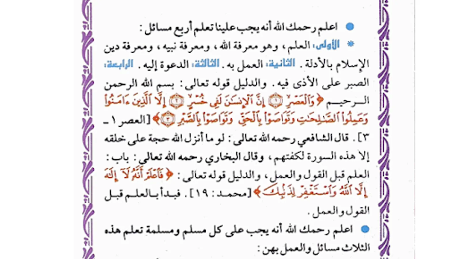 The Book of Three Fundamentals and Its Evidence contains the principles that a person must know from the knowledge of the servant of his Lord