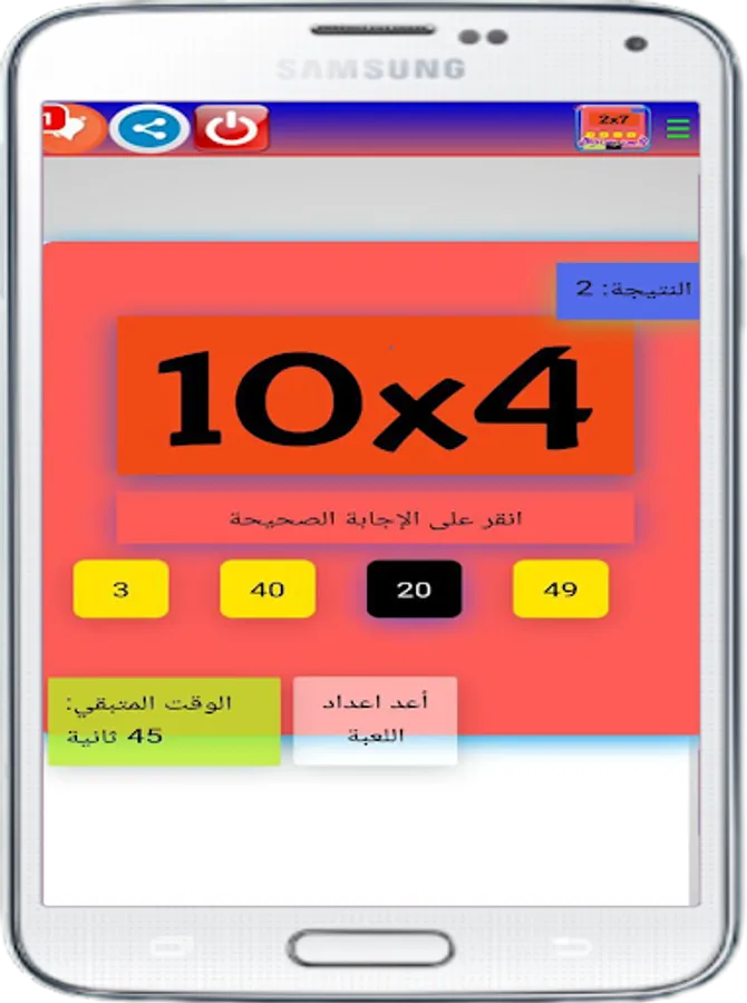 Game points increase the memorization of the mathematics table and enable him to quickly answer it. The game in Arabic.