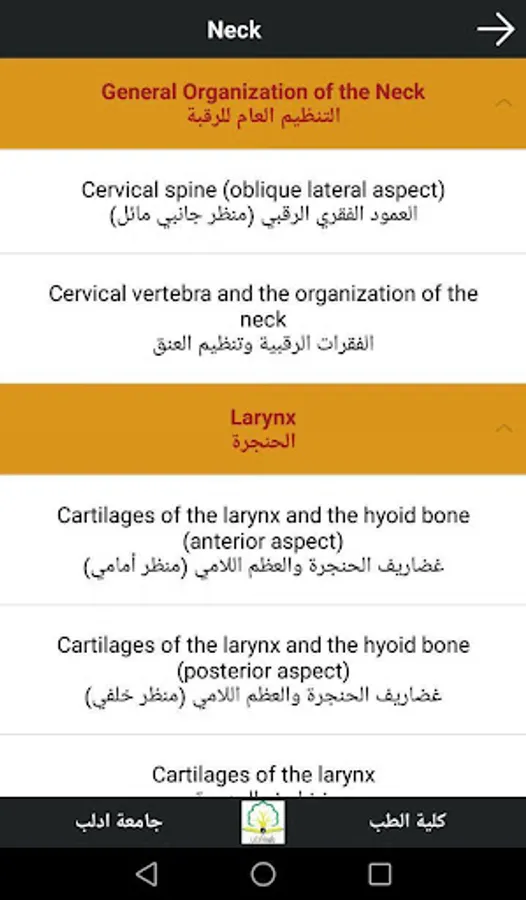 - Teaching Anatomy in Arabic - Interactive Version. All rights reserved to Idleb University - Faculty of Medicine. Beta version.