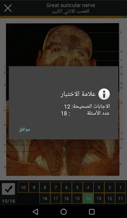 - The possibility of presenting classifications and test questions in Arabic, English or two languages together with an evaluation of the mark after each test.