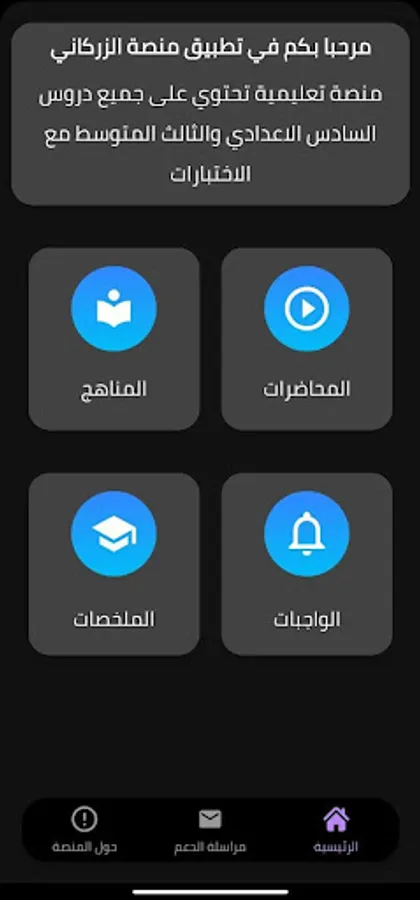The application of the Al-Zarkani educational platform is specialized in publishing lessons, curricula, summaries and lieutenants for the third intermediate and sixth preparatory students.
