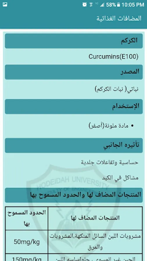 Through this program, you can know the name of the food additive and its source, as well as the side effects that this additive may cause on the health of the consumer if it is used in quantities that exceed the permissible limit.