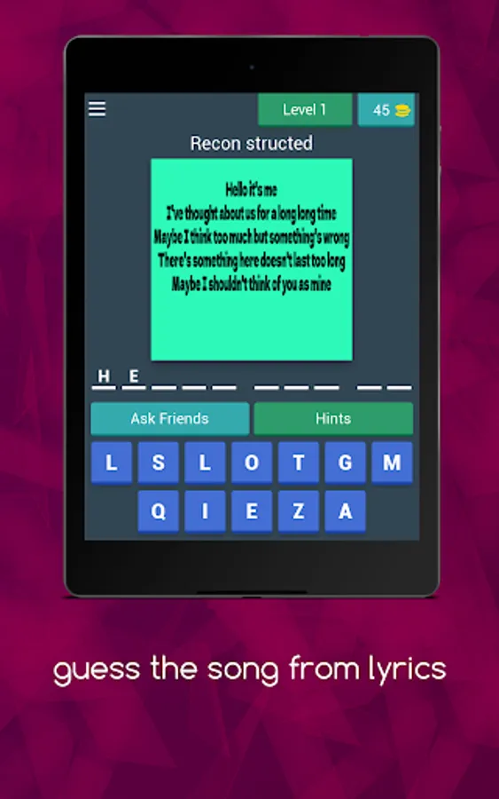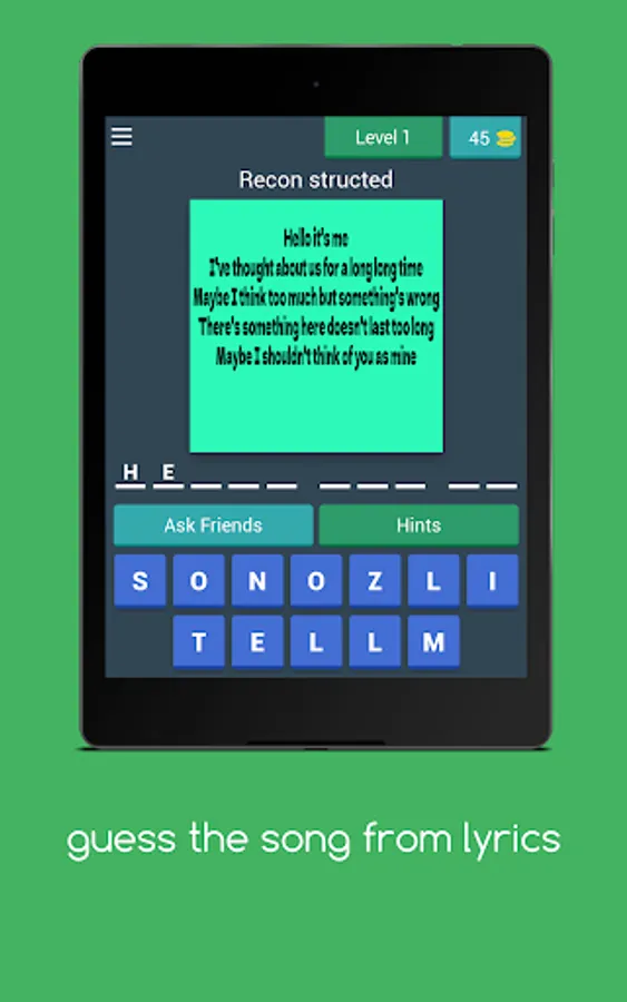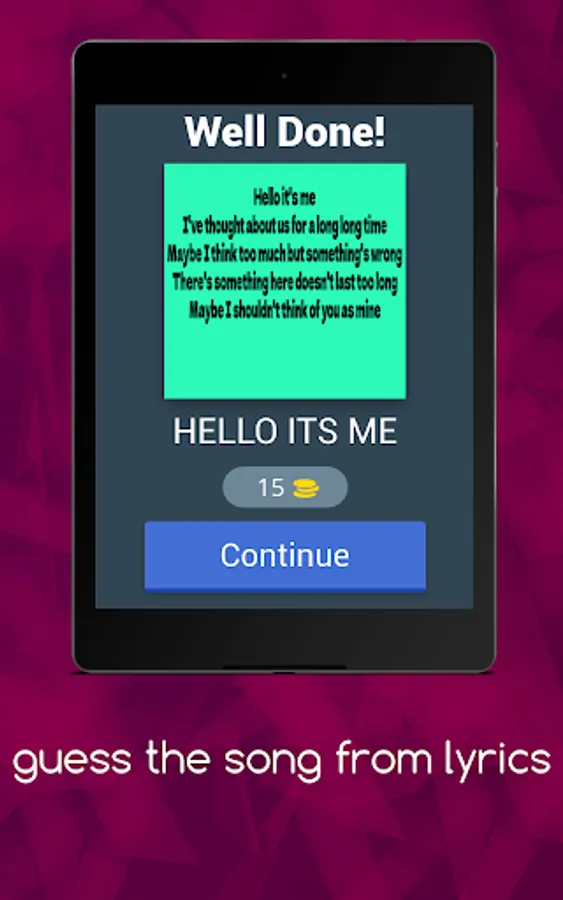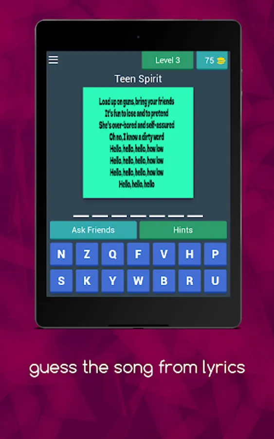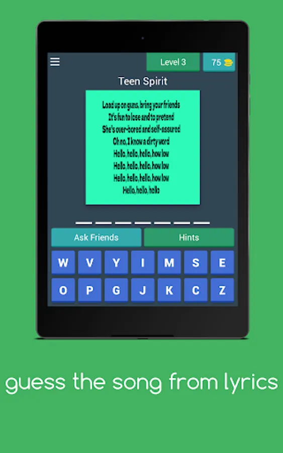 GAME DISPLAY NAME:Guess the song from lyrics