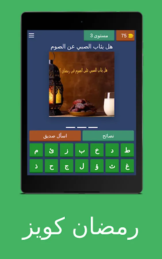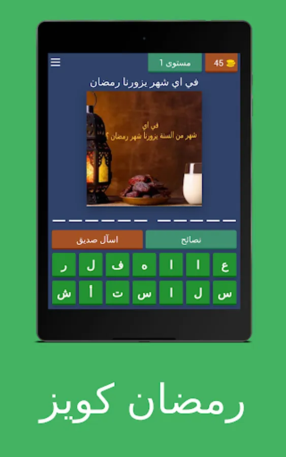 Discover "Ramadan Quiz", the most exciting and exciting time-passing game in Ramadan. The fun never stops with multiple game types such as: classic quizzes, online duels, daily quests and special quests. Let this game mesmerize you with its simple and elegant interface and attractive graphics. 🎮✨