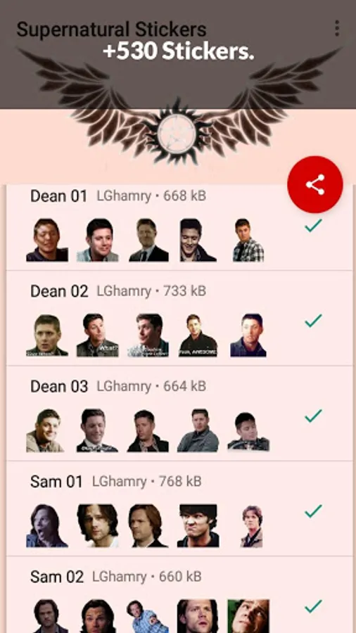 Available now +530 Stickers for WhatsApp about Supernatural series.