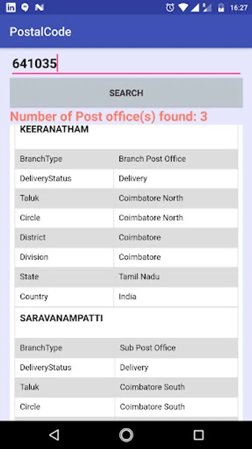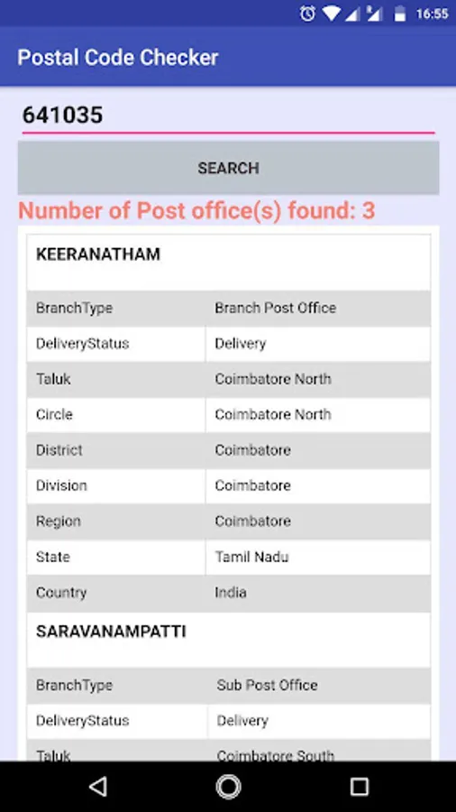Postal Code Checker Gives you Post office details of Given Postal Code in below mentioned detailed format