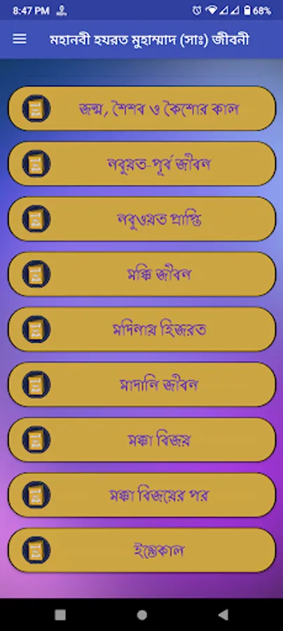 Welcome to the biography app of the Prophet Muhammad (peace be upon him). In the biography app of the Prophet, we have carefully presented the biography of the world prophet. You will find important information and events from the birth to the death of the Prophet (peace be upon him) (Nobijir Jiboni) in the app. It is important for every Muslim and non-Muslim brother and sister to know the life story of the Prophet (Nobijir Kahini). After reading the biography of Hazrat Muhammad (peace be upon him), may Allah Almighty grant everyone the grace to build their lives in accordance with the Sunnah of the Prophet (peace be upon him), Amin.
