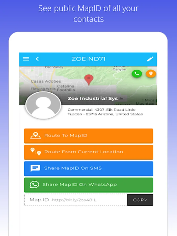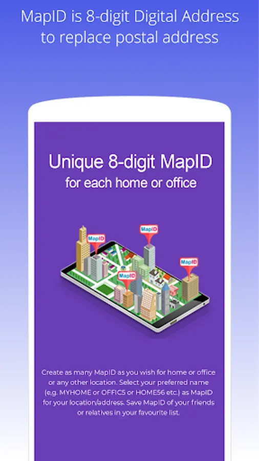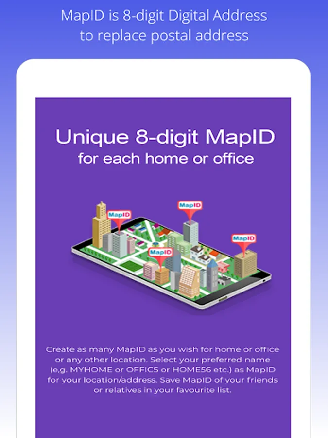 MyAddressPin app provides Digital Address (MapID) for any location on world map. MapID is only 8 digit code and it can be used in-lieu of lengthy postal & street addresses. MapID can be created for your Home or Office or any other location for ease in locating and routing from any other location. You can view Public MapIDs of your contacts in this app. MapID is easy to share with your friends or clients to enable them reach you hassle-free.