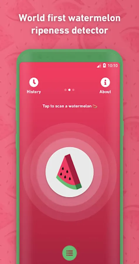 Do you always waste money on unripe watermelons? Hah! It's 2019 and everything has been easy: just install the app and thump the watermelon, and the magic will happen. The app uses complex algorithms that analyze the sound frequency of a watermelon, and detect, based on the sound, the ripeness of the watermelon. Additionally, the app contains several tips to help you choose the best ripe watermelon.